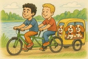 Zwei Tage später beschlossen Benni und Oliver, einen Ausflug nach Sirmione zu unternehmen – mit den E-Bikes und einem Hundeanhänger!